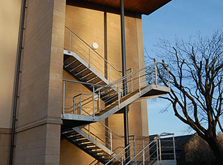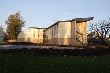 The design was focused around creating a pleasant well lit environment for the inhabitants while fitting with the site and surrounding buildings. This was achieved by using a red fair faced blockwork to emulate edinburgh sandstone and accents in timber to connect with the surrounding trees.