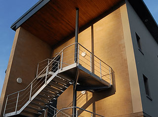The design was focused around creating a pleasant well lit environment for the inhabitants while fitting with the site and surrounding buildings. This was achieved by using a buff fair faced blockwork to emulate edinburgh sandstone and accents in timber to connect with the surrounding trees.