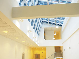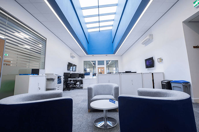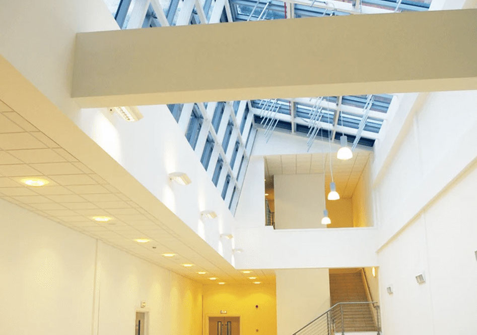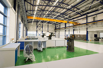 3: A comfortable & safe working environment where the external envelope had to be designed to achieve a sound reduction Rw(dB)51; comply with “Vulnerable Building “ counter terrorism requirements and achieve 2hr fire separation between the workshop and office zones