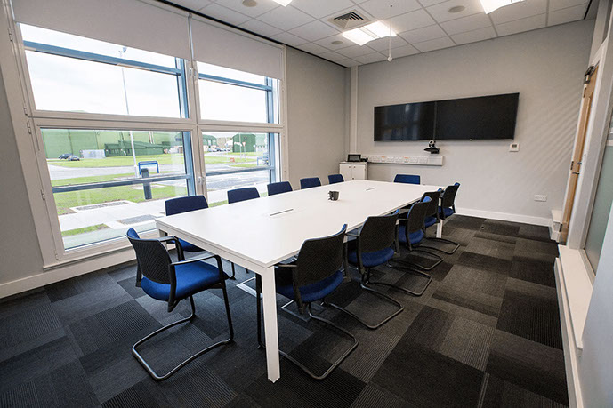 The main drivers were Rolls Royces’ aspirational requirements to provide a Service Delivery Centre which reflects their corporate image. This influenced the external colour scheme and materials. The building was also designed to achieve the following: