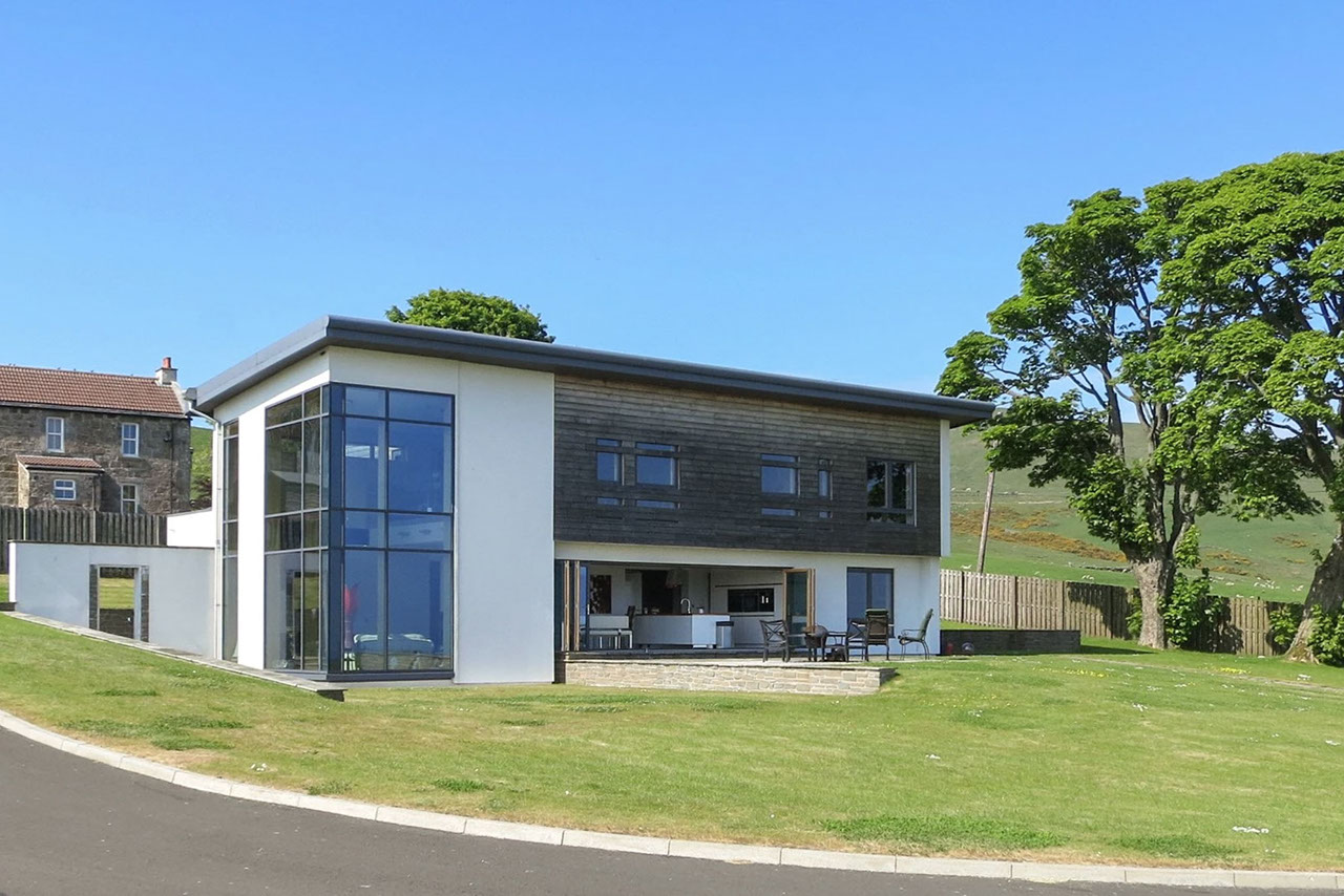 Scope: To design and build a modern linear house. The house was to take advantage of the south facing views over the Firth of Forth and be unobtrusive in its surroundings