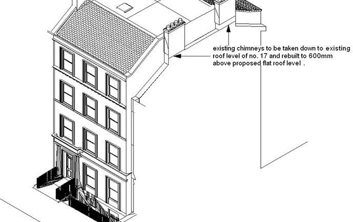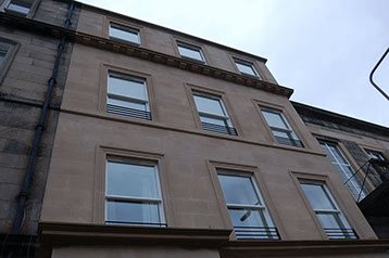 Scope: To design and build a flatted development in a gap site in Edinburgh New Town. The design was constrained by Planning Requirements and had to be built in a style and of the same materials as the adjacent properties.